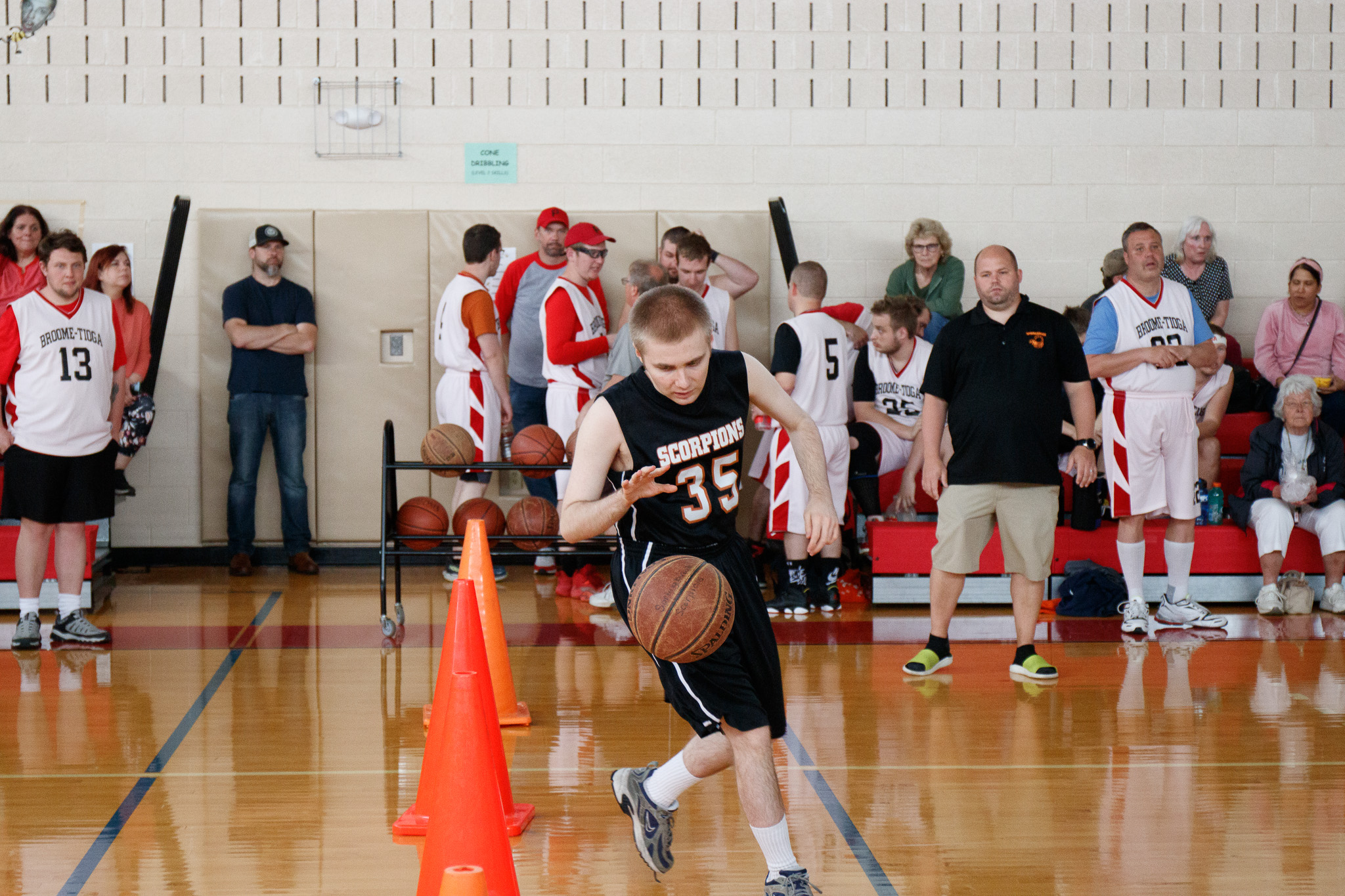 Last Saturday, Springbrook was alive with the excitement of hosting the 8th Annual Springbrook Special Olympics Basketball Invitational. With both the Main and Oneonta campuses echoing the thunderous pounding of fast breaks, the roar of made jump shots, and the joyful shouts of enthusiastic teammates and spectators, this year’s event was a success. Seven teams attended, including the Springbrook Scorpions teams, Team Orange, and Team Black. Visiting teams included the Saratoga Wildcats, Broome Tioga Panthers, Ithaca Red Raiders, Schenectady Patriots, and Fastbreak Schenectady. The event showcased a round-robin-style tournament and individual basketball skills competition.