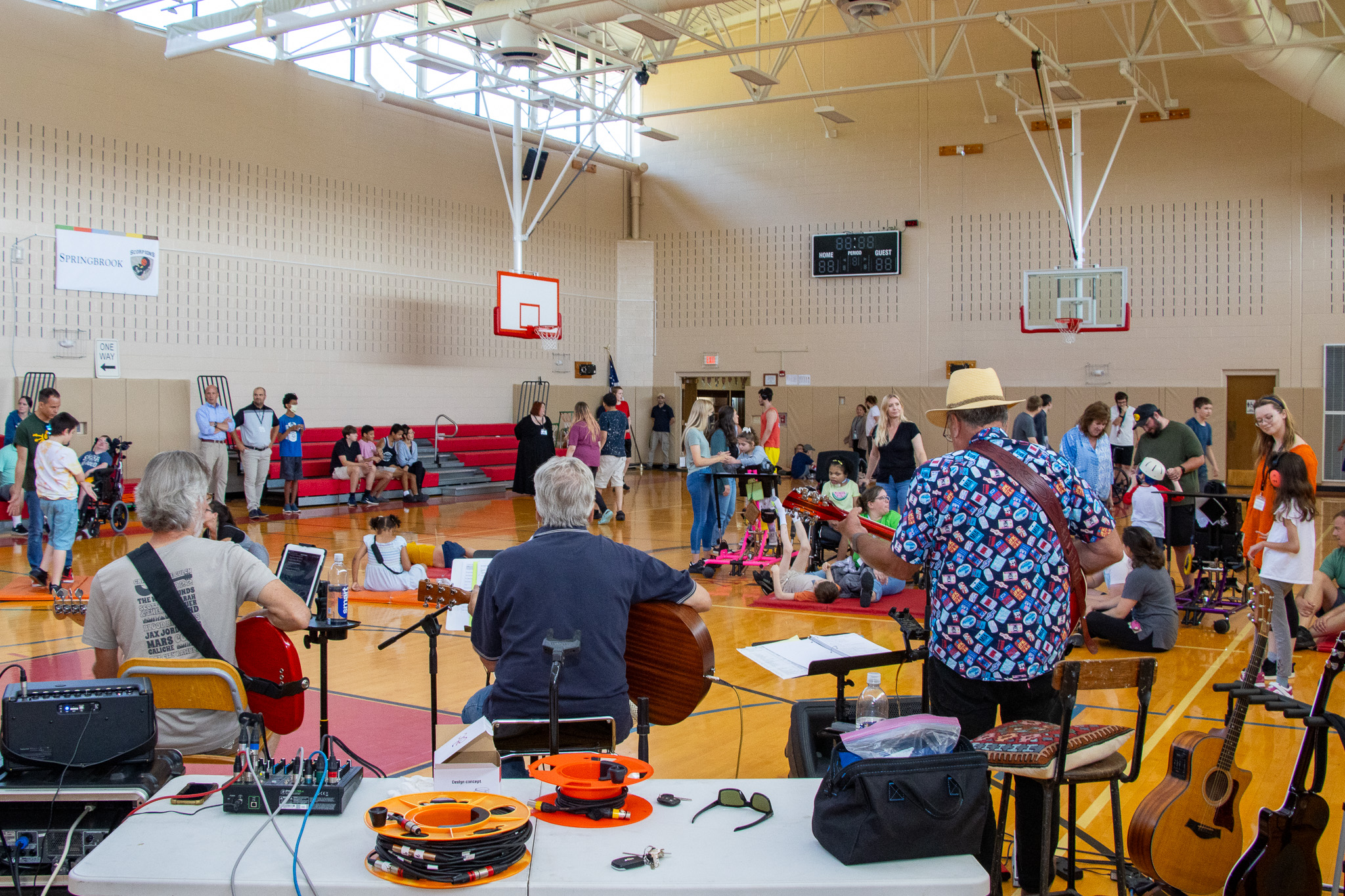 A roar of clapping hands, tapping of dancing feet, and a contagious beat are what filled both Springbrook’s Oneonta Campus and The School’s gymnasiums last Friday, thanks to The Schramm Band. Springbrook welcomed the lively band, who play both covers and original music over the course of the day. A crowd favorite was Old Crow Medicine Show’s rendition of “Wagon Wheel”. The students also loved the opportunity to strum the bass guitar as the band’s bass player went into the crowd. Springbrook’s COO, Seth Haight, even joined in and sang with the band at the Main Campus. The Schramm Band always knows how to put on a show and Springbrook is looking forward to welcoming them again!